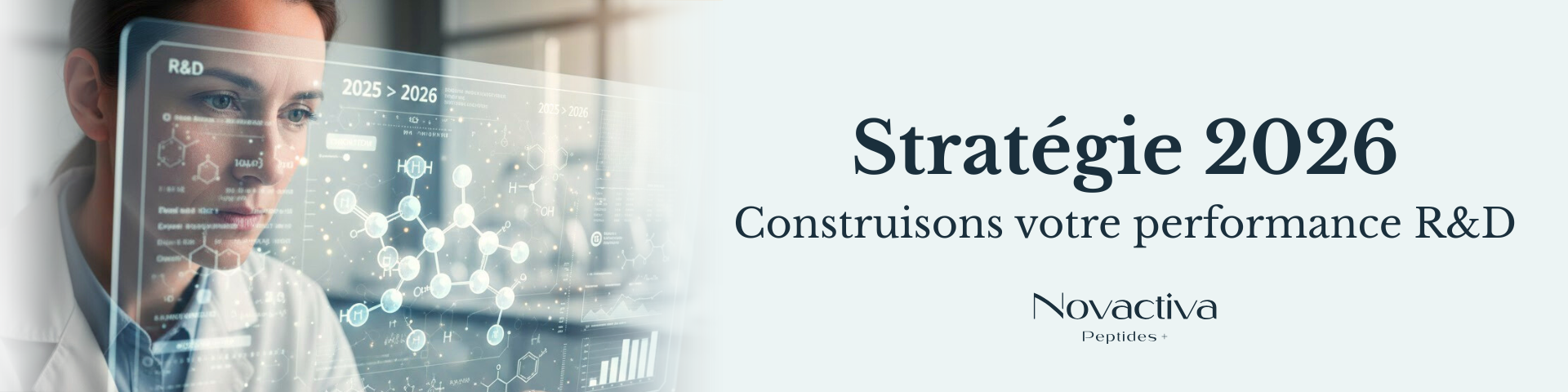 Chez NOVACTIVA, nous concevons des solutions pensées pour les standards de demain. Notre gamme de complexes de peptides bioactifs brevetés (NOVASTYNE® GLOW et FLEX) a été développée pour apporter une réponse concrète aux nouvelles exigences de précision du marché.